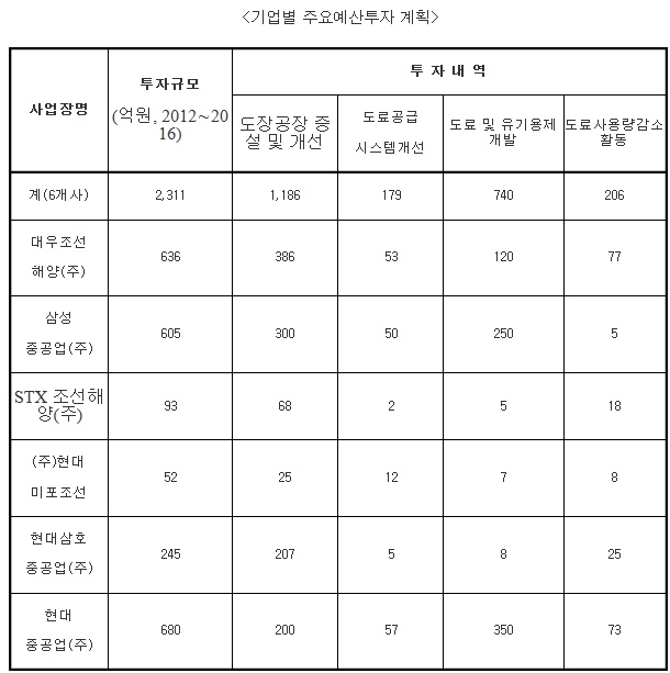 - 도장시설 신축, VOCs 저함유 도료사용, 도장공정 개선 등에? 총 2,311억 원 투자 예정